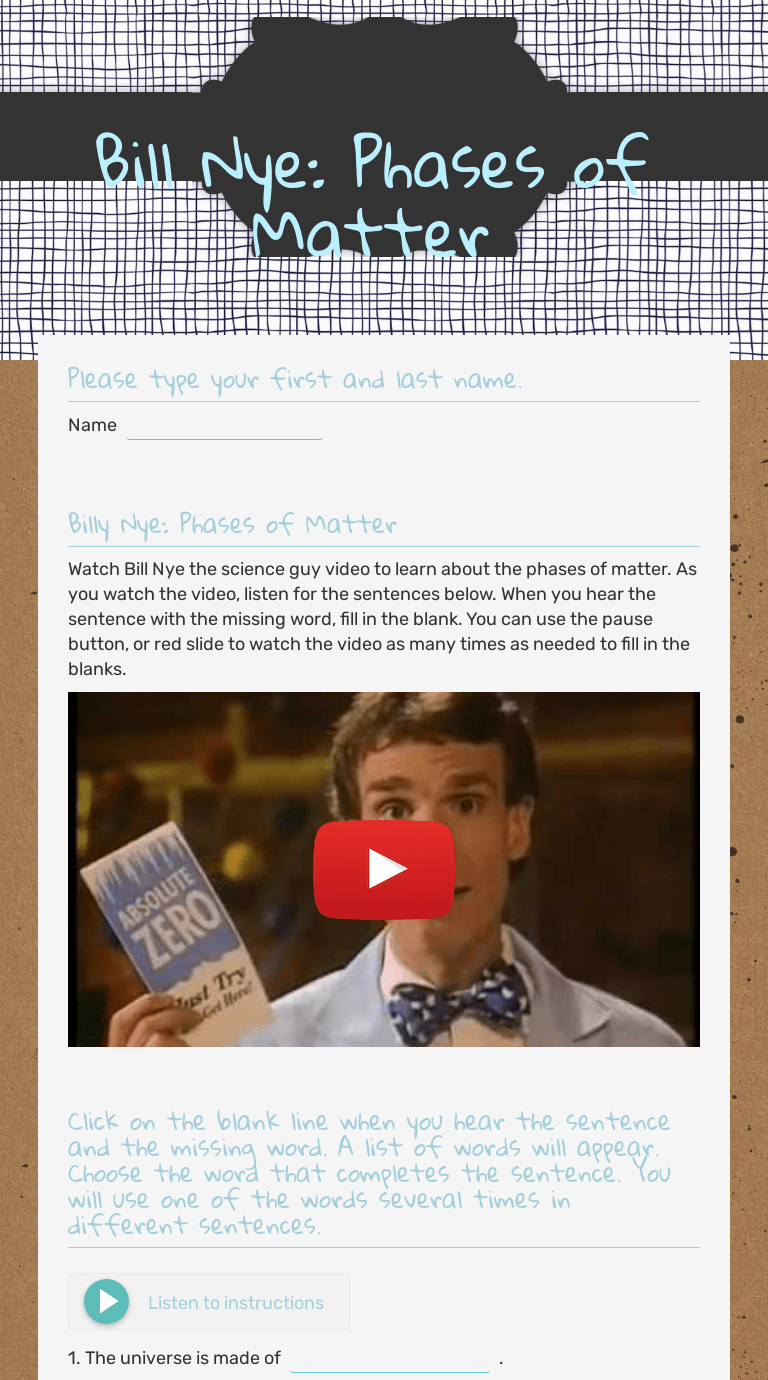 A separate page contains the quiz answer key phases of matter worksheet. Answer key included!other bill nye worksheets:bill nye: